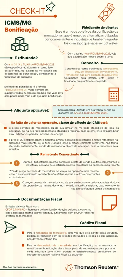 Os conceitos gerais da bonificação e a tributação do ICMS está descrita no infográfico abaixo. Em relação ao PIS e Cofins, abordamos ao final do infográfico.