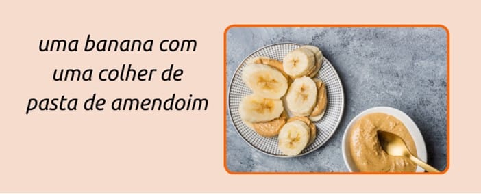 - Uma banana ou uma fatia de pão integral com mel, geleia de frutas ou pasta de amendoim